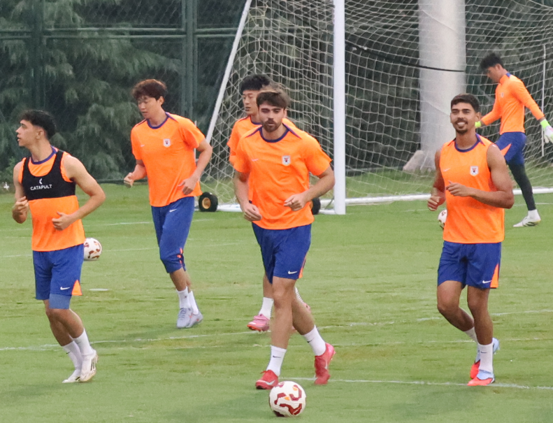 泰山队的训练安排在18时进行,郑铮停赛,彭啸和于金永参加国字号集训,依木兰、陈泽仕还无法参加球队合练,彭逸翔、齐千程参加B队的比赛,他们都没有出现在一线队的训练场。泰山队五外援参加合练,泽卡在列,韩鹏表示他的身体状态还不是很理想,能否出场还要看训练情况。